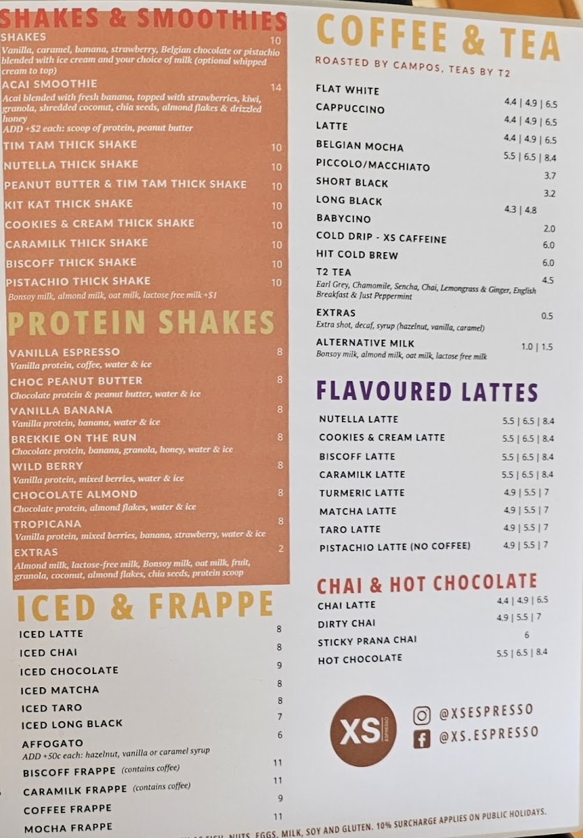 At XS Espresso, expect a culinary adventure that showcases an array of delightful dishes crafted with passion. Start your day right with their signature Big XS Breakfast — a hearty plate featuring eggs cooked to your liking alongside crispy bacon, chorizo, golden potato gems, and creamy avocado. For those who savor a touch of elegance, the XS Benedict is a must-try, piled high with poached eggs and hollandaise sauce, complemented by your choice of savory toppings like smoked salmon or chorizo (A$27.00).